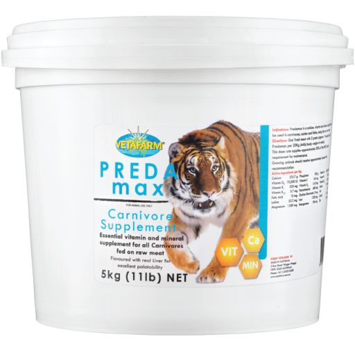 Predamax contains essential vitamins, minerals and dual source calcium. Designed for carnivores that are being fed a raw meat diet to supplement the diet with crucial vitamins and minerals that may be lacking, and to prevent deficiencies, ensuring optimum nutritional balance.