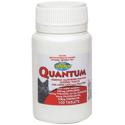 Quantum tablets are a safe and effective control of internal parasites including Roundworm, Hookworm, Tapeworm and Heartworm. Quantum has the added benefit of flea control without the smelly chemicals or messy spot on treatments.