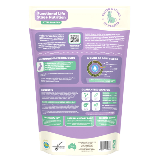 Rabbit Origins Senior provides veterinary-formulated nutrition, with fresh farm-grown virgin hay at its core and functional ingredients to give ageing rabbits the support they need.
