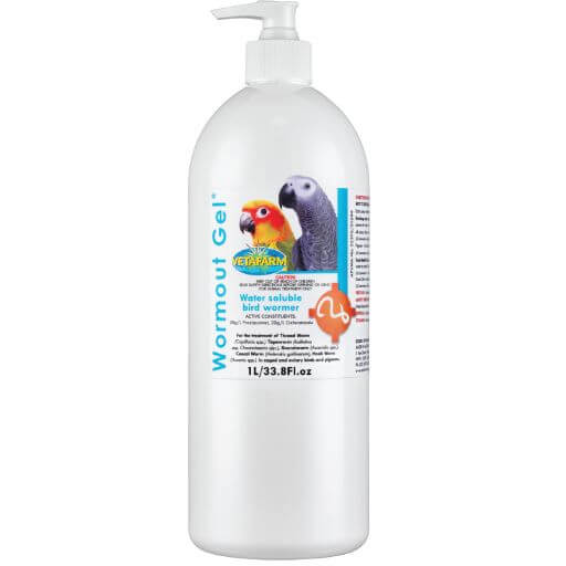 All aviary birds- Add 2mL of Wormout Gel to 160mL of drinking water.