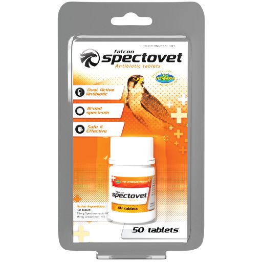 Bacterial infections like Staphylococcus, E. coli and Salmonella can affect hunting falcons during the moulting season. It’s essential to practice good hygiene and sanitation practices, such as cleaning perches and equipment regularly and providing clean water to help prevent bacterial infections. Falcon Spectovet Tablets is a broad-spectrum antibiotic tablet that helps to treat common bacterial infections in falcons, particularly those of the respiratory system and sinus.