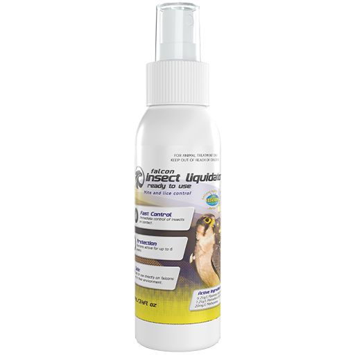 Ensure that there are no insects in the environment surrounding the falcon and its housing, as they will contribute to the spread of disease. Falcon Insect Liquidator* is safe to use on falcons and their environment. Immediately controlling insects on contact and providing six weeks of protection.